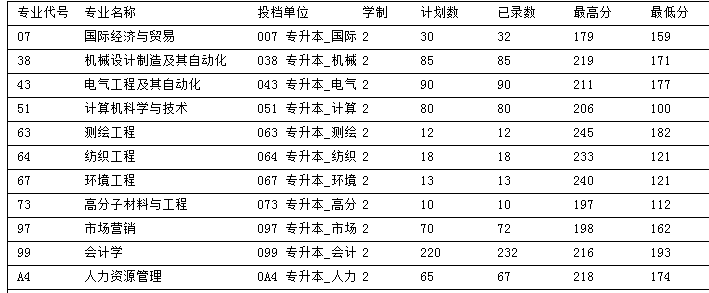 河南工程学院2016年专升本录取分数线